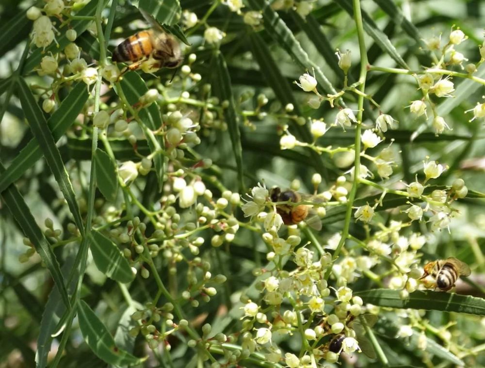 Com a aproximação da primavera, conhecida como “estação das flores” é comum o aparecimento de mais abelhas na área urbana. Uma das plantas mais requisitadas como alimento para estes insetos é a árvore aroeira salsa, também conhecida popularmente como aroeirinha, chorão e pimenteira.