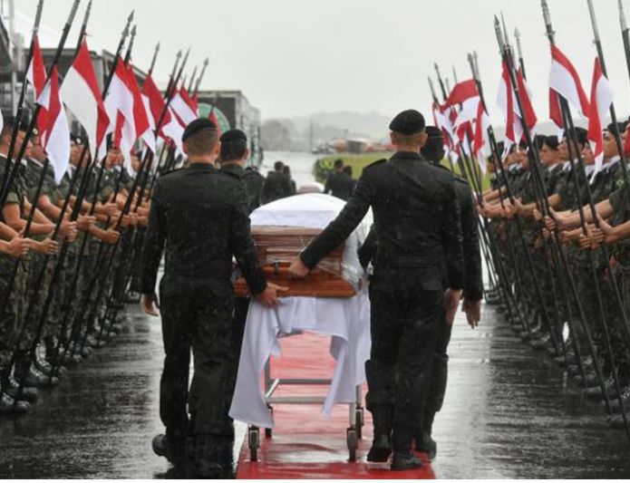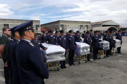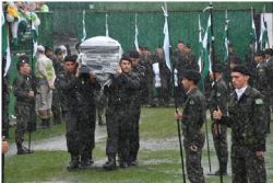 Os corpos de cinquenta das vítimas da queda do avião do time da Chapecoense foram recebidos neste sábado no estádio Arena Condá e carregados por oficiais do exército para uma área coberta dentro do gramado e entregue aos familiares.