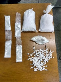 A pistola que o marginal usou contra os policiais foi apreendida e na casa onde ele estava refugiado foi encontrado 1.2kg de cocaína (uma parte “in natura” e outra já preparada em porções para o comércio), uma balança de precisão digital, dois rádios HTs, uma granada de uso exclusivo das Forças Armadas, R$ 150 em espécie e um telefone celular.