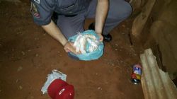 Pela Rua 9, a guarnição avistou um cidadão já conhecido nos meios policiais sair correndo ao perceber a chegada da viatura, pulando o muro de várias casas, até ser alcançado. Inicialmente ele resistiu à prisão sendo necessário uso de força física moderada para que fosse dominado. Ele apontou onde a droga estava.