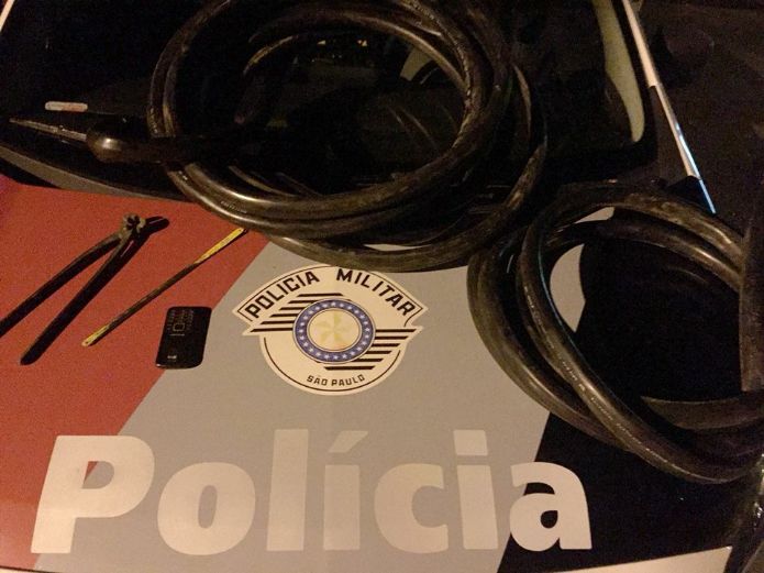 Ainda no local estava um veículo que seria utilizado para o transporte dos cabos e, após vistoria em seu interior, foi localizado documentos pessoais e o celular do indivíduo que se evadiu. Foi dada voz de prisão ao rapaz detido e encaminhado ao distrito policial (DP) para registro dos fatos.
