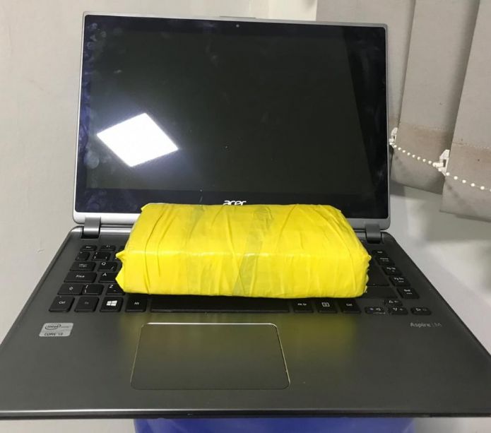 Entretanto, em vistoria ao interior da casa os policiais encontraram no quarto do averiguado um “tijolo” maconha prensada pesando 640 gramas e um aparelho de notebook, que constava como produto de furto ocorrido dia 22 de julho em um mercado da Cidade. Sobre o aparelho ele relatou que desconhecia o furto e havia comprado de terceiros.