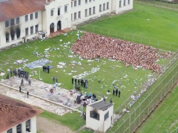 Imagens aéreas cedidas pela Polícia Militar mostram muita fumaça que saía de três pavilhões da penitenciária que os presos atearam fogo. O capitão da Polícia Militar Juliano Loureiro diz que a situação foi controlada ainda na manhã de terça-feira . O Corpo de Bombeiros foi chamado para controlar as chamas e o helicóptero Águia sobrevoou a cidade para localizar os fugitivos. Durante uma coletiva na tarde de terça-feira, o coronel da Polícia Militar Flávio Kitazume descartou relação com outras rebeliões que estão acontecendo no país. “Em nenhum momento houve refém e por isso descartamos este caso em relação aos demais fatos que estão acontecendo em outras regiões do país e isso nos tranquiliza.”