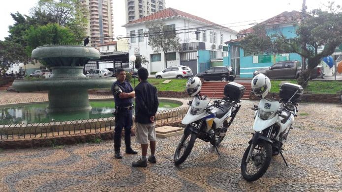 Um cidadão de 38 anos foi abordado na Praça Emílio Peduti - Bosque, região central da Cidade para uma averiguação de rotina. Ele estava na companhia de outros elementos que mudaram o comportamento ao perceberem a chegada da equipe do Grupo Especializado de Patrulhamento Ostensivo com Motocicletas (GEPOM), com os agentes Ronaldo e Carmelim.